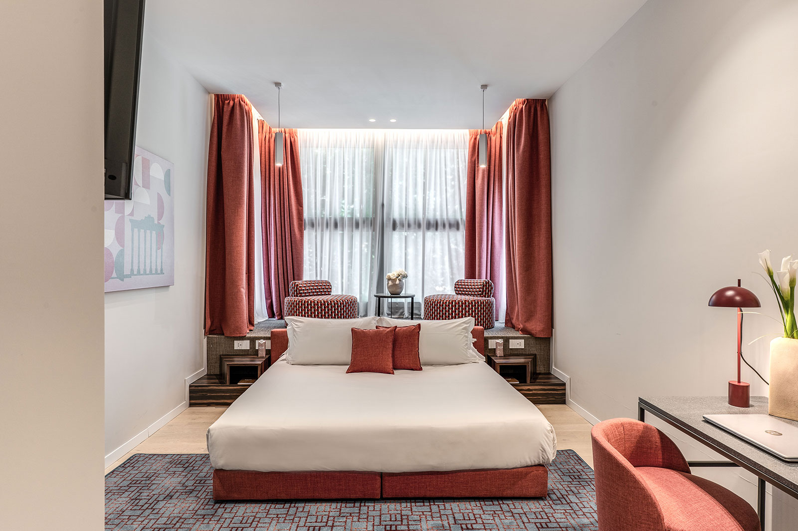 Featuring sleek furnishings and a sophisticated ambiance, every detail is crafted for comfort and style. Ideally located near Villa Borghese and just minutes from the city’s major attractions, it offers the perfect retreat for business and leisure travelers looking to experience Rome in a modern and exclusive setting.